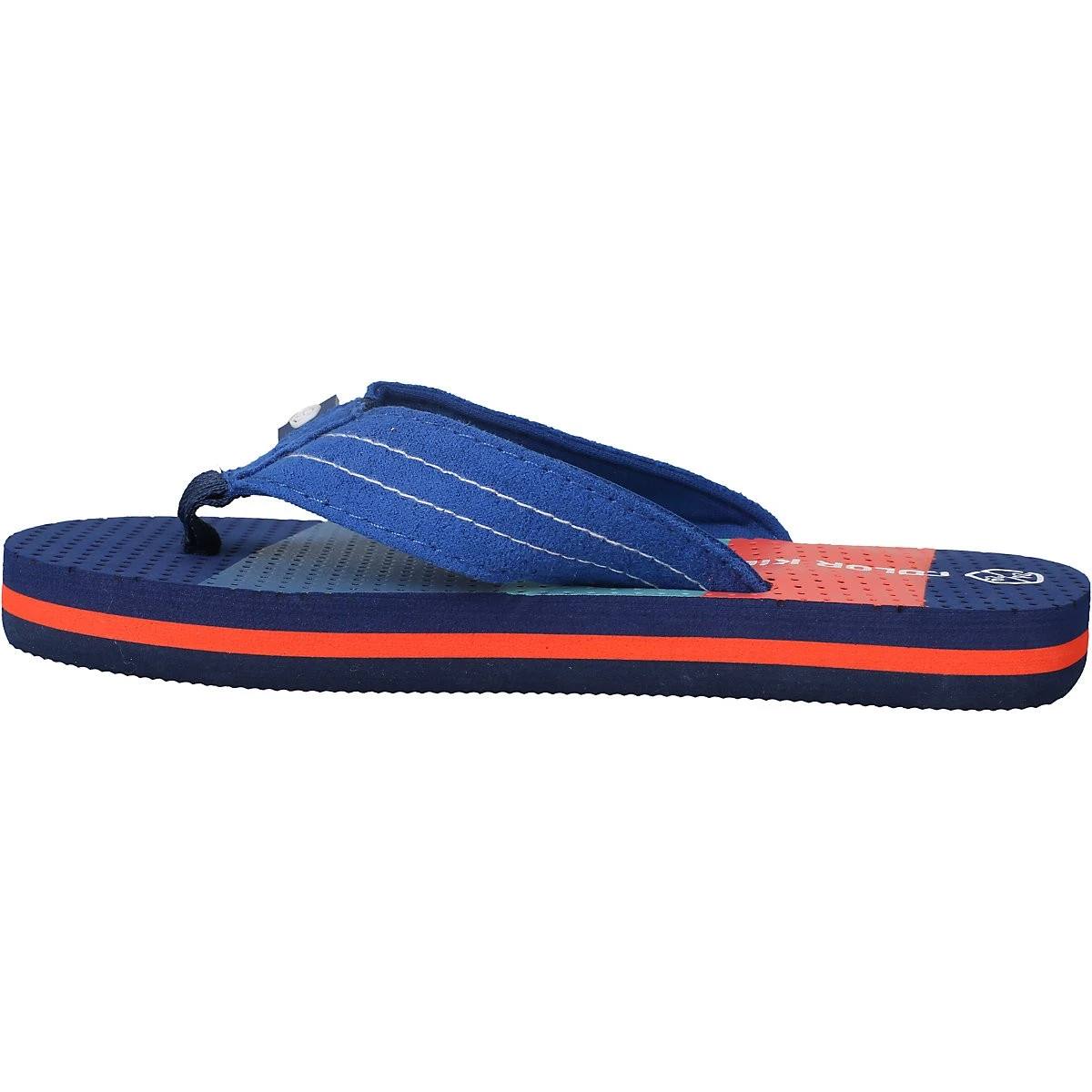 Die coolen Zehentrenner Easton sind durch den gepolsterten Riemen und das weiche textile Material am Zehensteg besonders bequem und scheuern nicht. Die Decksohle hat viele kleine perforierte Luftlöcher, die für ein angenehmes Trageklima sorgen. Die Laufsohle hat ein Profil, damit Ihr Kind auf nassem Boden eine bessere Trittsicherheit hat.