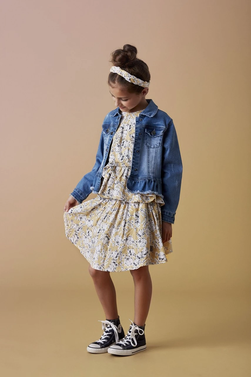 Creamie Viskose Mädchenkleid strohgelb/weiß mit Blumenmuster