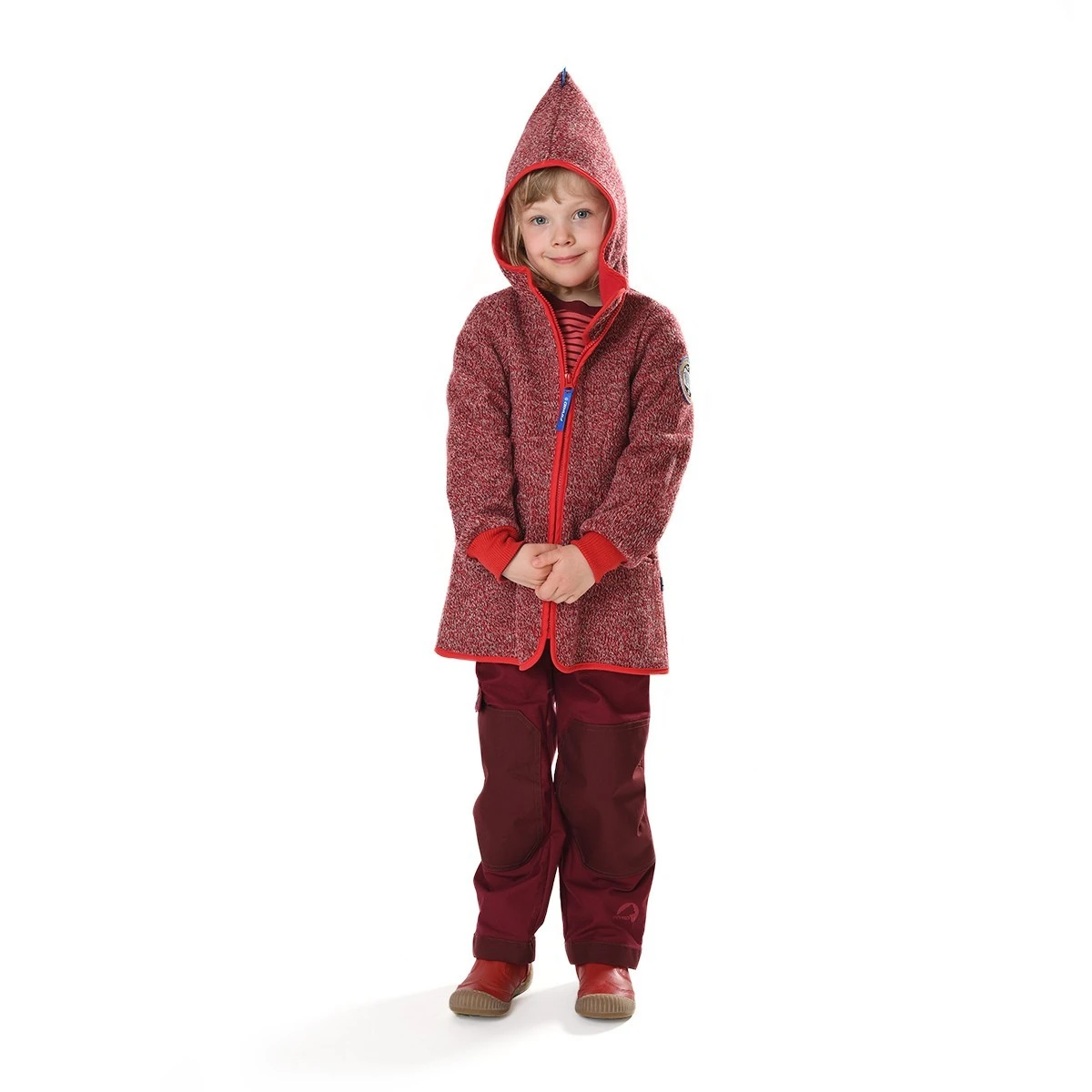 Gestrickte Mädchen Softshelljacke von Finkid. Ob auf der Bergwanderung oder beim Strandurlaub am Meer, diese Strickvariante der TONTTU mit Windstop trotzt jedem Sturm. Genauso variabel und mit Zipfelkapuze ( bis Gr. 110/120 ) macht diese Jacke solo wie auch eingezippt Spaß. Ab Gr. 120/130 ist die Kapuze abgerundet, ohne Zipfel.
