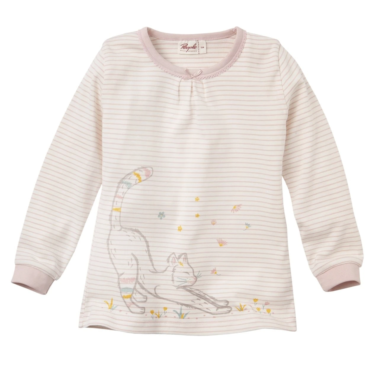- Oberteil: zarter Ringel in rosa-weiß, großer mehrfarbiger Motivdruck „Katze“