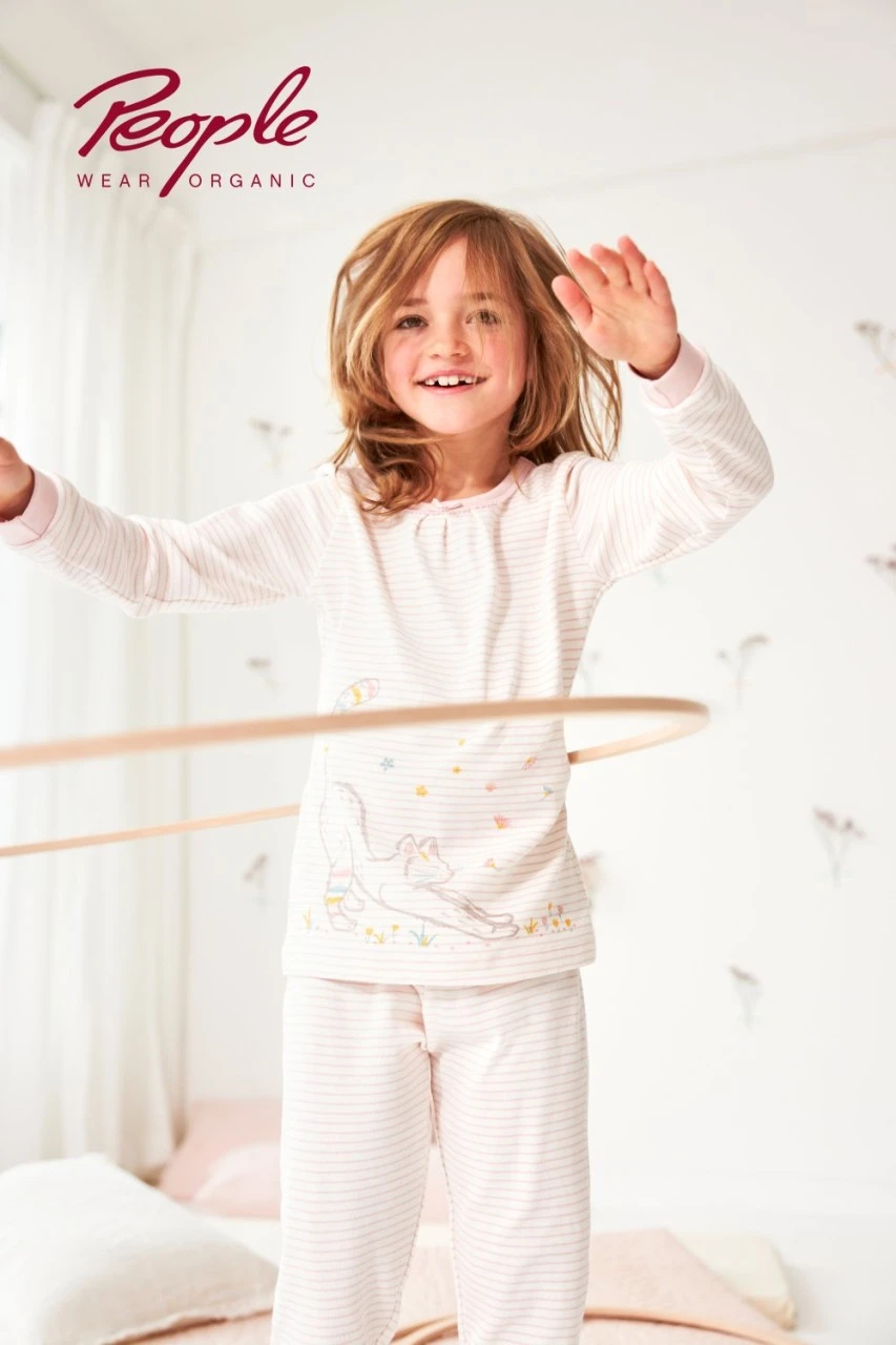 Mädchen Schlafanzug rosa Ringel Katze Bio-Baumwolle
