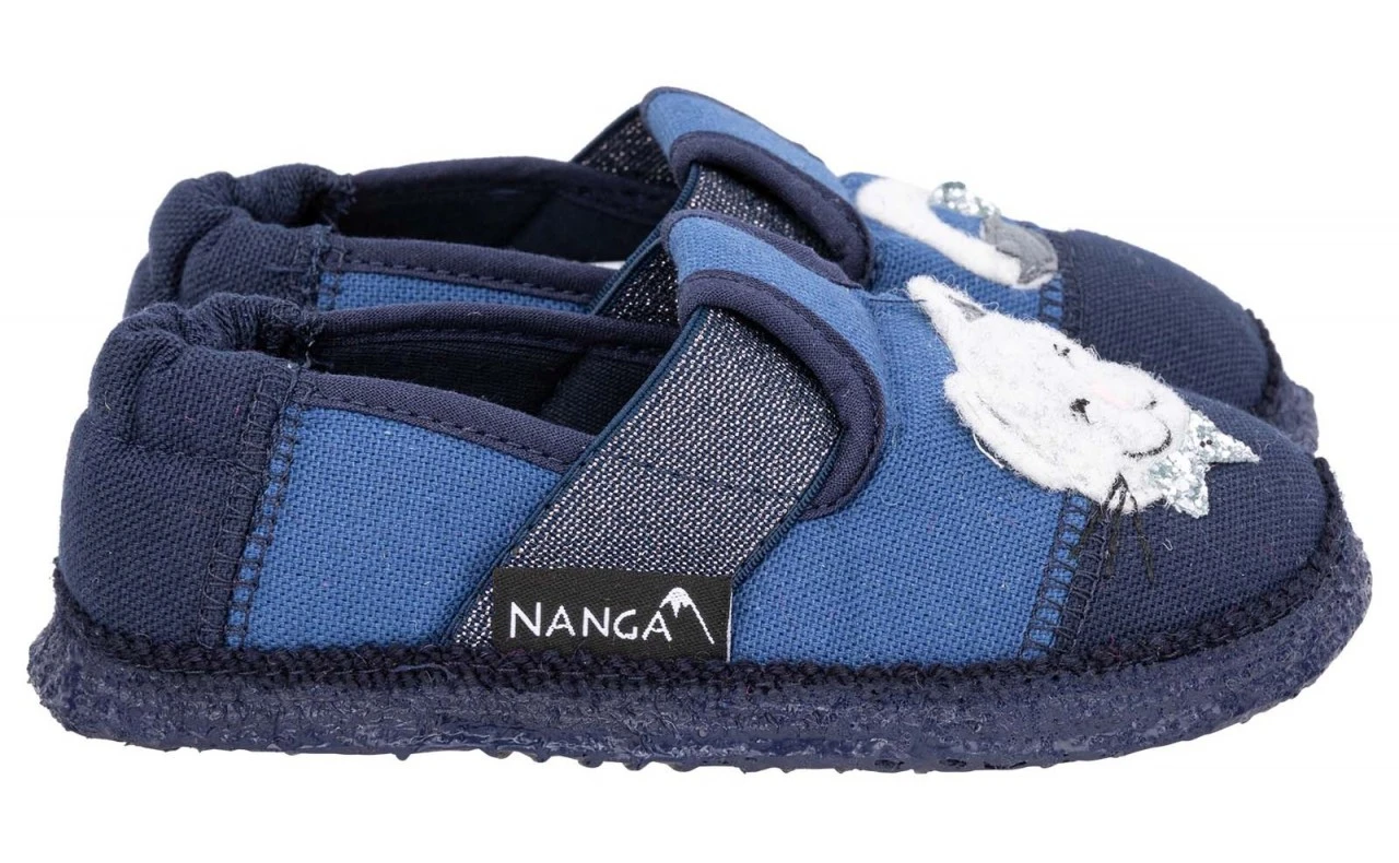 Bequeme Baumwollhausschuhe für Mädchen. Für die Herstellung von Nanga Hausschuhen werden nur 100% natürliche Materialien wie reine Bio-Baumwolle und Naturkautschuk verwendet. Der Latexüberzug der Laufsohle geht oben ca. 2 cm über den Sohlenrand. Das schützt den Baumwollstoff vor Nässe. Die schönen Hausschuhe werden nicht gleich nass, wenn Ihr Kind im Kindergarten mal durch eine Wasserpfütze im Waschraum oder nach draußen läuft. Nanga Hausschuhe bieten einen extrem hohen Tragekomfort und ein angenehmes Barfußgefühl. Nanga ist verdienter Sieger in Öko-Test 04/2016 und steht für tolle Hausschuhe in Bio-Qualität!