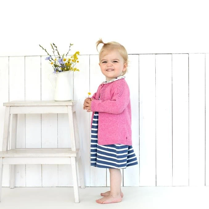 Hübsches Jersey Mädchenkleid mit feinen blau weißen Streifen. Das Material ist 100% Baumwolle , kontrolliert biologischer Anbau, „organic“ gem. GOTS lizenziert durch Ecocert Greenlife | Liz. Nr. 151811. Hergestellt aus Bio-Baumwolle in Ägypten beim Textilunternehmen der Kulturinitiative SEKEM.