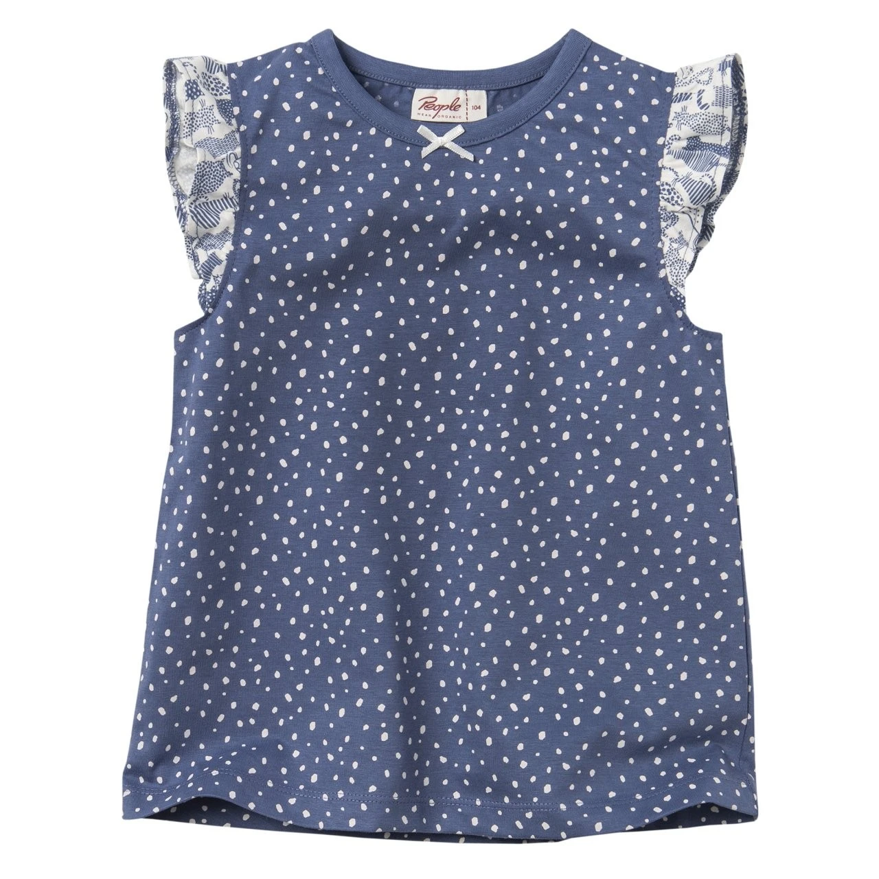 - Oberteil: grafischer All-over-Print „Sprenkel“ auf blauem Grundstoff
