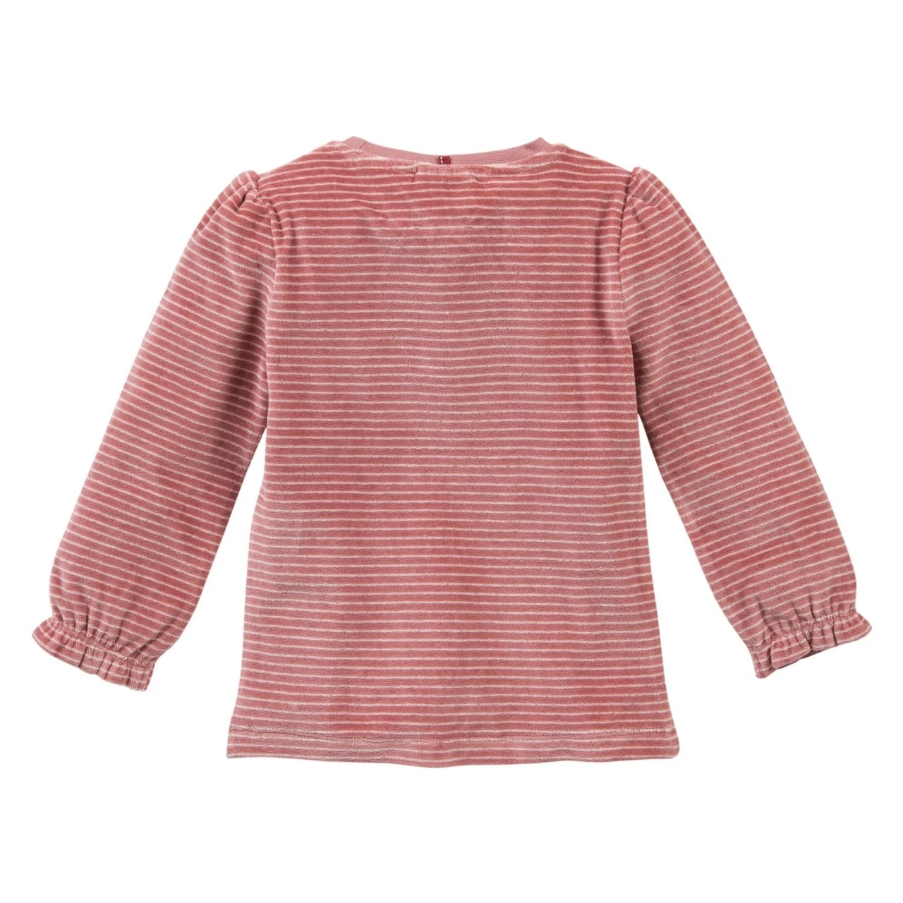 Wunderschöner Mädchen Pyjama aus kuschligem Nicki Stoff in beere-rosé geringelt. Am Kragen mittig platzierte Zierschleife, angepuffte Ärmel und gerüschter Abschluss am Ärmel und Saum. kuscheliger Nickistoff. Nicki ist kaum knitteranfällig und besitzt durch den langen Faserflor eine gute Formbeständigkeit, sowie eine glänzende Optik. Wir verwenden den flauschigen Stoff gerne für Schlafwäsche für die kühleren Jahreszeiten. Das Material ist 100% Baumwolle , kontrolliert biologischer Anbau, „organic“ gem. GOTS lizenziert durch Ecocert Greenlife | Liz. Nr. 151811.