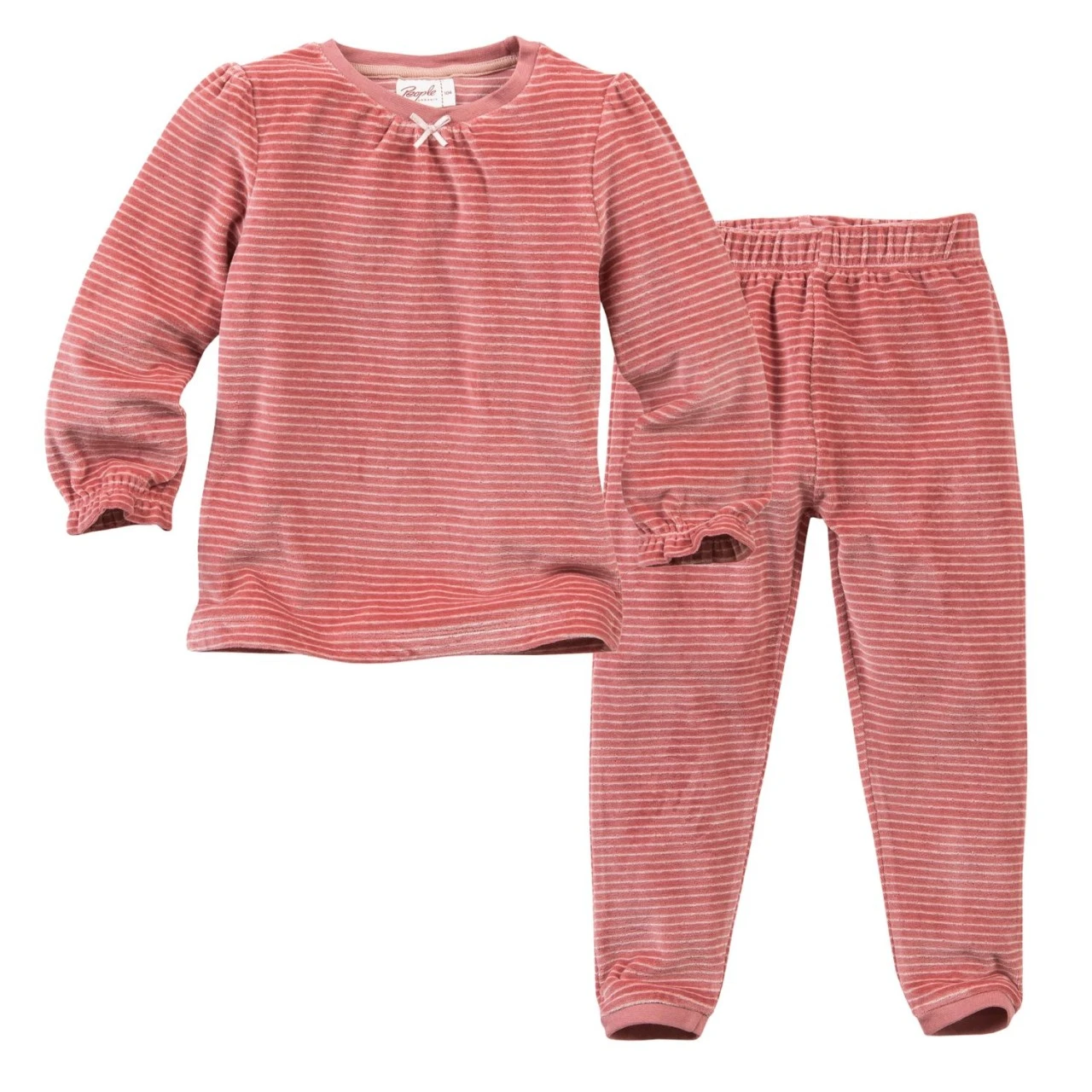 People Wear Organic Mädchen Nicki Schlafanzug beere geringelt Bio-Baumwolle