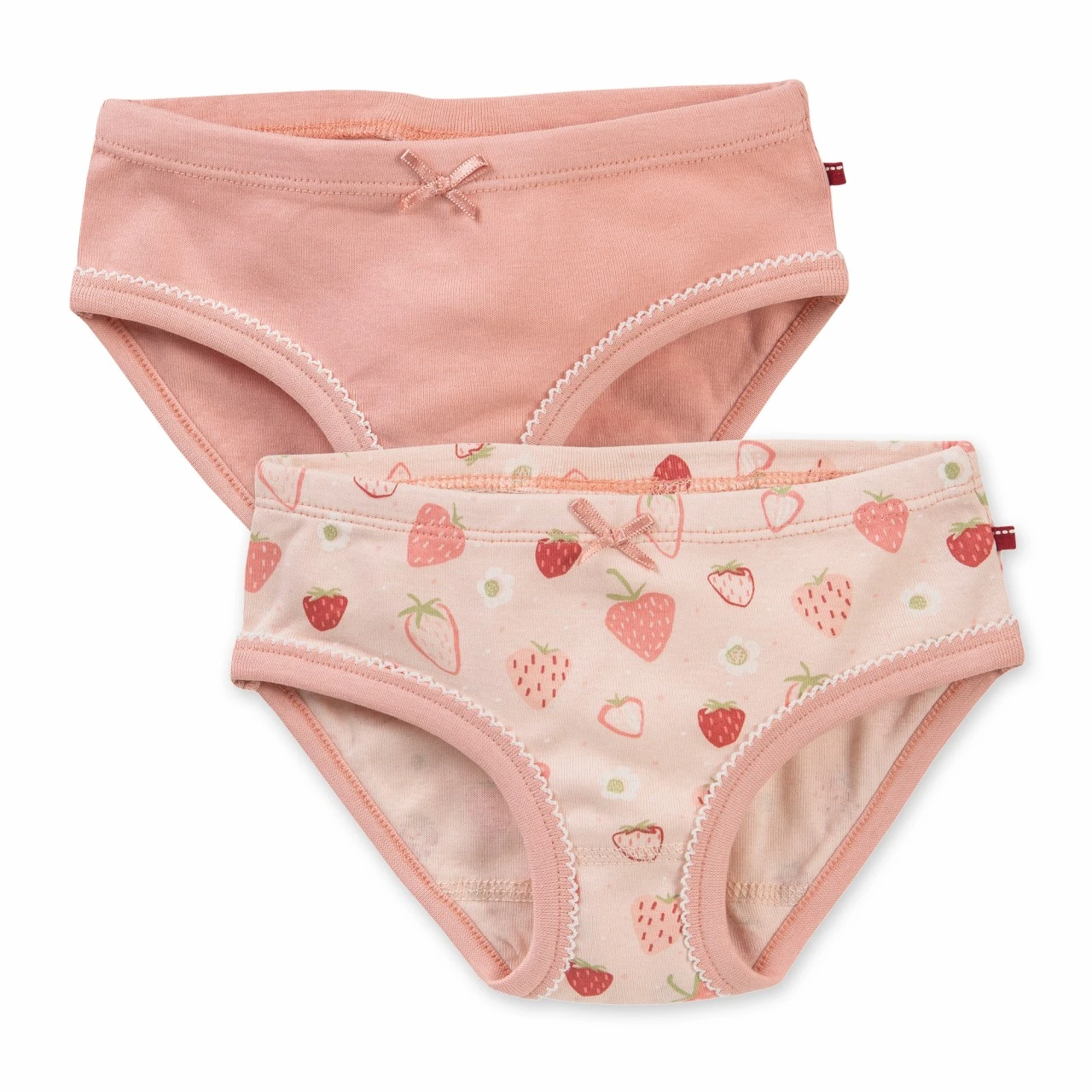 People wear Organic Mädchen 2er-Pack Slips hellrosa mit Druck „Erdbeeren“ und rosé aus Bio-Baumwolle