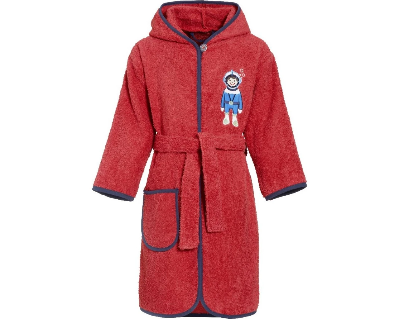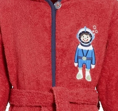 Flauschig weicher Kinder-Bademantel in rot mit einem coolen Taucher