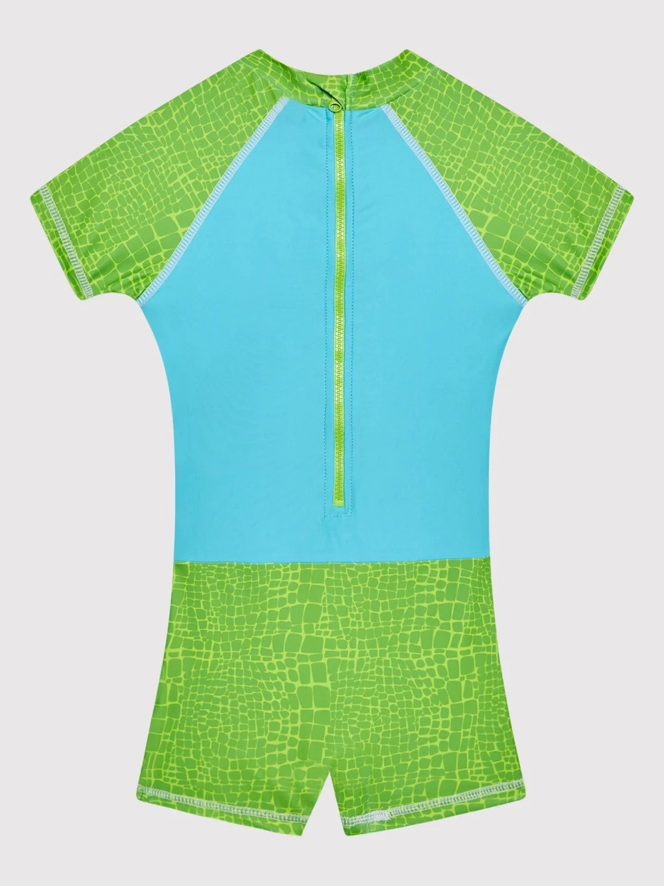 - Modischer UV Schutz-Overall in lime und aquablau mit coolem Dino-Motiv